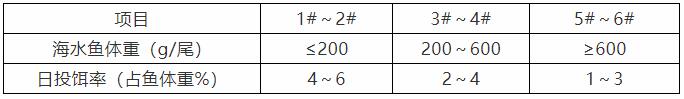 « 根据网箱或池塘中海水鱼规格及数量,参考投饵参考表中推算投饵量,再根据天气、水温、水质、海水鱼摄食及健康状况等予以适当调整。